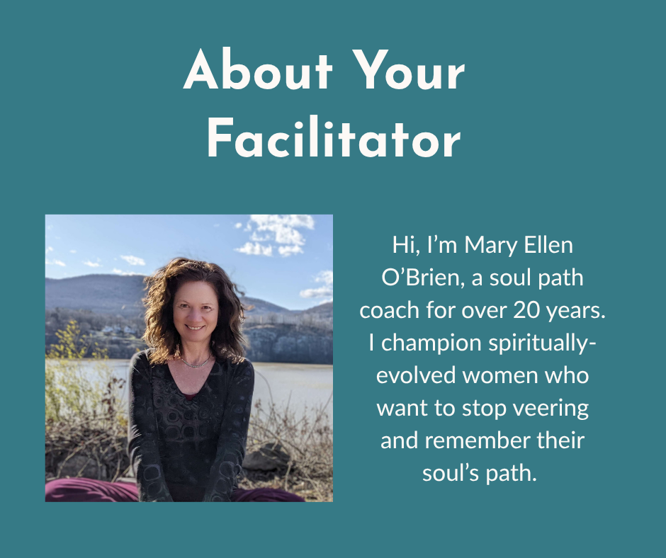 “For anyone who would like to connect with their higher self, intuition and/or get out of their heads and into their heart, this is for you! Mary Ellen has crafted a way to align you with your true self. She is passionate, patient, and gifted in being able to help you discover true intimacy with your soul. Her teachings, empowerment, and skill set have helped me tremendously in my life!”